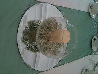 I made the table centres, vase £2.50 from asda, candle under a £1, 1 stem of Gyp about a £1 and then the hired mirror!!! total bargain!!! |